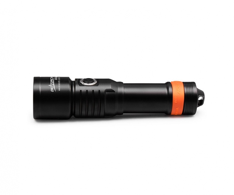 Нейтральный белый свет OrcaTorch D530 5000K — это обязательный основной фонарь для дайверов. Его мощность составляет 1200 люмен, а угол суперфокусировки луча — 7 градусов, что обеспечивает концентрированный дальний луч. В фонаре используется боковой переключатель из титанового сплава, который поддерживает 2 режима освещения: высокий режим 1200 люмен и средний режим 500 люмен, что упрощает управление фонарем под водой. Светодиодный индикатор, расположенный на кнопке включения, также показывает уровень заряда аккумулятора.